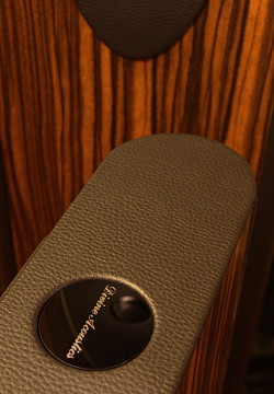 W obciągnięty skórą wierzch kolumny wkomponowano czarny lustrzany krążek z wygrawerowanym logo firmy. Zanim zobaczyliśmy Electry „na żywo", obawialiśmy się, czy krążek nie będzie nieco jarmarczną dekoracją. Na szczęście wykonano go precyzyjnie z dobrej jakości tworzywa, przez co stanowi on faktyczną ozdobę głośników.